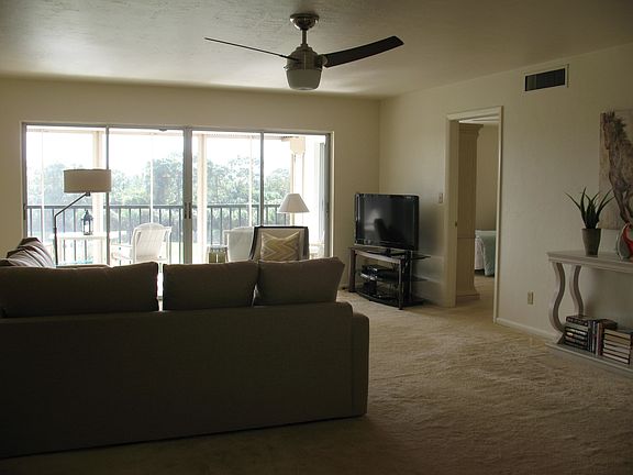 Fourth floor condo with elevator access...beautifully decorated with fine comfortable furnishings. The Master bedroom suite offers a king size bed, large closet and private en-suite bath with walk-in shower. The guest bedroom offers 2 full size beds and also en-suite bathroom with tub/shower combo. The kitchen offers all the modern conveniences of home. Laundry room in house with full size washer and dryer. Living room provides plenty of seating for watching the large flat screen TV or quiet reading. The sunny lanai offers lovely views of the golf course and lake below. The Imperial Golf Course community is a delightful, quiet, and mature community with large heated swimming pool, exercise room and tennis courts conveniently located a short walk from your door. Imperial Golf and Country Club is located just north of Immokalee Rd on the East side of Tamiami Trail. Just 2 miles from the beautiful beach at Delnor Wiggins State Park. The new Mercato shoppping area is also close by with the Silver Spot movie theater, fine restaurants and shopping. Seasonal rental 1 month minimum Additional fee's: 10% tax, $150.00 departure cleaning fee and $125.00 application fee
