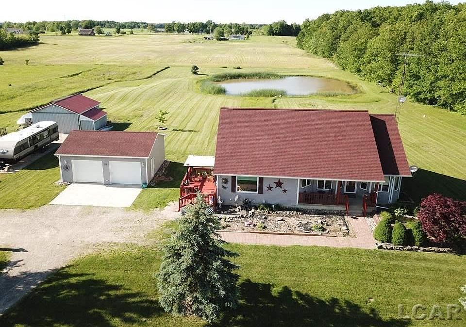 Panoramic views from this Light & Airy 3 bedroom, 21/2 bath country ranch skillfully sited on 10.12 acres, with a 1 acre pond stocked with blue gill and bass. Oak cabinets in eat-in kitchen plus all appliances included. Pantry/main level laundry. Formal dining area, spacious living room with cozy fieldstone fireplace. Master bedroom features slider to deck, walk-in closet, huge master bath with whirlpool tub & vanity sink. 3,346 sq. ft. of living space, central H/A and central vacuum system. Partially finished walk-out full basement offers built-in storage cabinets, half bath, laundry, French doors to outside from basement and is plumbed for 3rd bath. Newer 2 car detached garage plus Pole Barn/garage with work bench. Storage shed, patio, deck and easy care landscape. Too good to last!