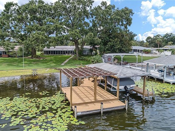Come see this Chain of Lakes, ranch-style block home located directly on Lake Mirror! This lovingly maintained, move-in ready home includes a private, covered dock with a boat lift and private boat ramp access. Nestled on a half-acre lot under mature oak trees, this 3 bedroom, 2.5 bathroom home comprises a large formal living room and dining room as well as a kitchen with wood cabinets and a gas stove. Charming yet functional built-in shelves and cabinets throughout the home provide excellent storage options, while the updated plantation shutters add style, privacy and efficiently help keep the home cool. The over-sized sliding glass doors offer gorgeous views from the family room and lead out onto a spacious screened and covered back porch that is perfect for entertaining. The oversized back porch and garage have beautifully finished pine tongue and groove ceilings, as well. This beautiful setting also includes a convenient air conditioned half bathroom and utility room, making it easy to clean up after a day on the water. With a location close to Downtown Winter Haven, and access to the ultimate water playground, this lovely home is a must-see.