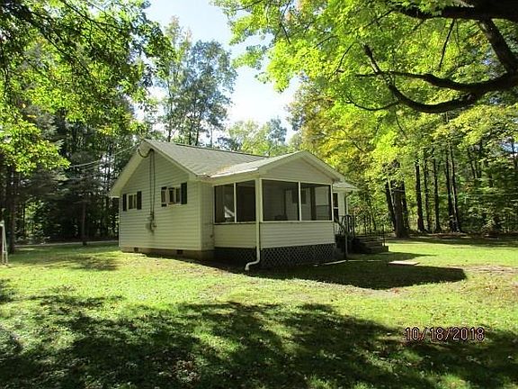 Cozy two bedroom cottage with electric heat on three large well manicured lots with detached one car garage. Custom cabinets in kitchen. This immaculate cottage comes fully furnished and move-in ready. New deck on front and screened in sun room on back. Close to Pymatuning Lake.