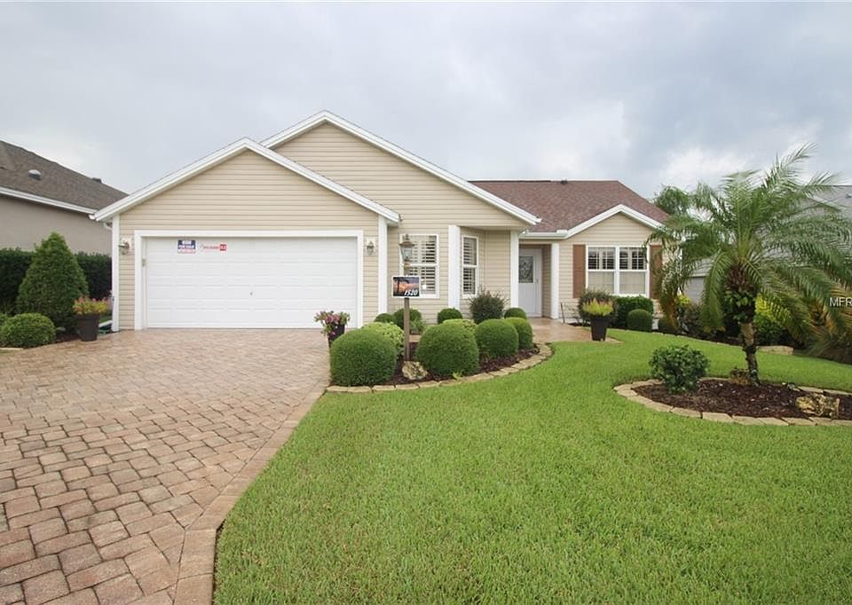 Open House Sat Oct 13th 11 to 2 PM When the location matters, you have it here. Beautiful and well maintained Wisteria model from original owner on cul de sac street. Located behind Mallory Country Club and a short distance to Lake Sumter Landing. New Wood Laminate floors, Stainless appliances will be in place and are on order. Pull outs on all lower cabinets and cabinet pantry. Roof and AC were replaced in 2007. Garage features pull down stairs, built in cabinets. Enclosed Lanai with outside patio for grilling and sunning. Brick Paver Driveway. Loads of updates. Leaded glass entry door. Plantation Shutters. Murphy bed in second bedroom. Indoor Laundry, Volume ceilings, Natural Gas service connected. Quiet neighborhood close to all the activities this Paradise has to offer. Bond Balance is only $11,387.07 Annual fire Assessment is $124. Bond and CDD Annual payment is included in property tax indicated.