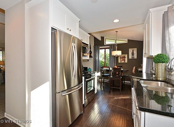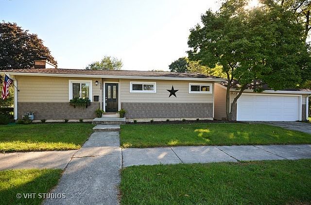 This house is a must see. Just move in and hang pictures. Completly remodeled. Open layout w/vaulted ceilings throughout 1st floor. New white kitchen cabinets, granite counter tops & stainless steel appliances. Brick wood burning fireplace in Living room. New carpet in living spaces and hardwood in kitchen. New hardware,lighting & plumbing fixtures throughout. Shared master bath on the first floor. Large finished basement with full bath and an extra bedroom/office.New vinyl siding on home and 2 car garage. Newer windows throughout.Walking distance to schools, parks and shopping.