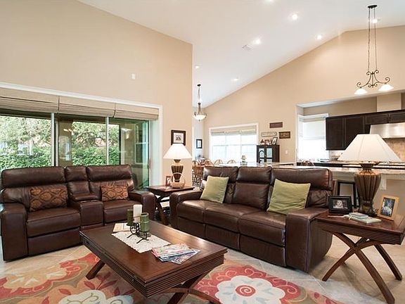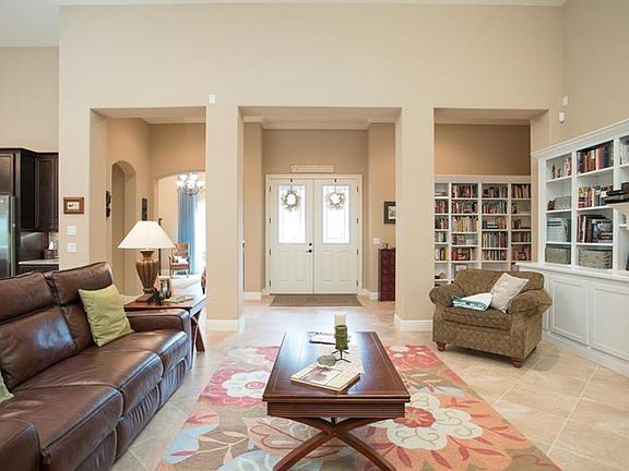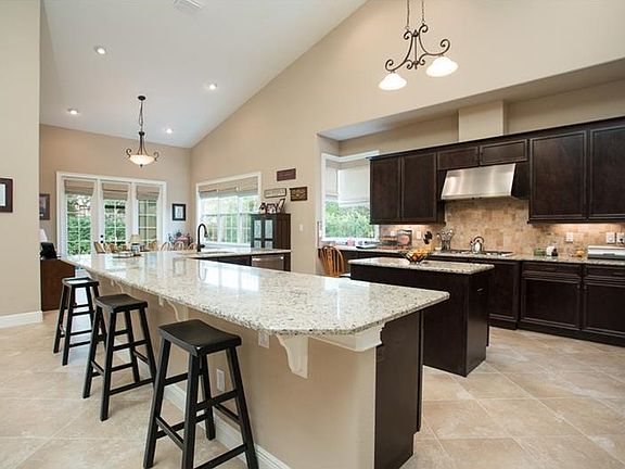 Welcome home to this invitingly open and perfectly planned 5-bedroom single-story newer residence with beautiful pool and paver deck, large screened patio, great room floor plan, and all the extras. Inspired by the vineyard homes of Santa Barbara, this sprawling retreat is positioned on a wide premium half-acre lot set beneath towering oaks. Custom-built for entertaining and maximum enjoyment. The enormous kitchen features a 5-burner gas cooktop, double islands, stainless appliances, rich mocha-style cabinetry, two step-in pantries, butler pantry, granite counters, tile backsplash, and a lovely breakfast nook bathed in sunshine by windows on three sides. Overhead is a soaring ceiling that crowns at 17-feet offering a dramatic setting for the main living area of the home. A fireplace and built-ins add to the elegant ambiance. A triple pane disappearing sliding glass door opens to reveal a large outdoor screened family room with pavers. The master retreat boasts vaulted ceilings, plantation shutters, a breathtaking custom closet, frameless glass shower, garden tub, and separate vanities. The split floorplan separates bedrooms for privacy. Other extras include an oversized laundry/mud room, spray foam insulation, vinyl windows, insulated garage doors, tankless hot water heaters, and much more. Walking distance to Thornebrooke Elementary.