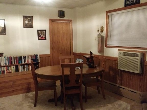 * Two story, 3 bedroom house with approximately 1,300 square feet of living space and a full unfinished basement. * Gas hot water heat with central thermostat. * Kitchen (17' x 10') with wood cabinets & vinyl flooring. Refrigerator, range and dishwasher included. * Living room (17' x 13.5') with carpeted floor. * Dining room (14.5' x 13') with carpeted floor. * Full bath (8.5' x 7.5') with shower over tub and surround, ceramic tile flooring. * Bedroom 1 (11' x 14.5') with carpet and closet. * Bedroom 2 (10' x 9') with carpet and closet. * Bedroom 3 (10' x 9.5') with carpet floor and large (11' x 9') walk-in closet/bonus room. * Two built-in wall air conditioning units in second floor hallway. * Washer & Dryer hookups in basement; outside access to basement. * Front porch (17' x 7') and rear deck with fenced back yard. * One car garage plus an additional off-street parking space in rear of property included. On-street parking in front of the house. Tenant pays all utilities. Available for rent or rent-to-own. An indoor cat or small/medium dog may be permitted with an additional monthly pet fee.