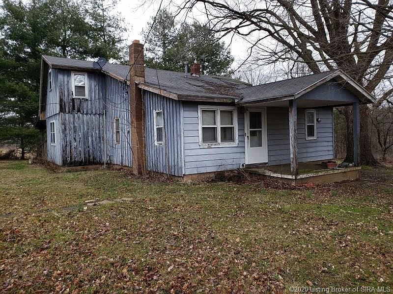Nice secluded little homesite with 2-car detached polebarn garage. Home in need of repair; has not been lived in for over a year. All utilities onsite including NATURAL GAS, public water, and septic. Metal shed and wood stove stays. Within minutes of SR 56 with easy access to downtown Salem and I-65/Scottsburg. Property being sold AS-IS.