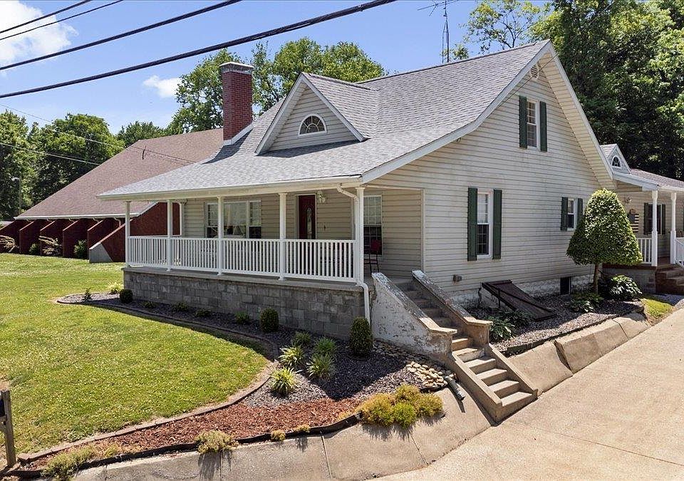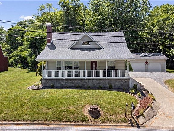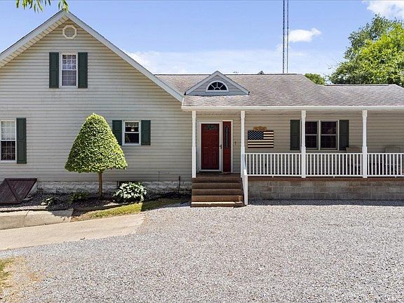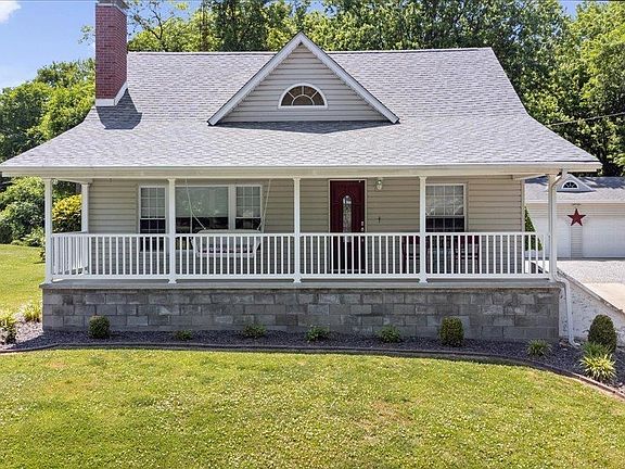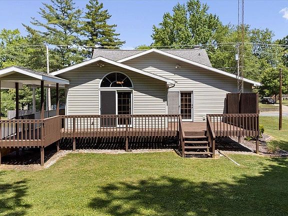 This striking home is located on half an acre just at the edge of town in a serene setting with wooded backdrop. It all begins with a welcoming covered front porch complimented by the wrap around covered side porch area which leads to the rear deck overlooking the large back yard. Inside the home are beautiful finishes and outstanding living space. The spacious great room features a cathedral ceiling adding to the room's dimension. An updated kitchen has counter top and cabinets galore offering great functionality and storage. A formal dining room sits just off this space. The cozy living room with wood burning fireplace makes for a great retreat. The large master suite offers double closets one of which is a walk-in and attaches to the remodeled master bath. A patio door leads right to the rear deck area. The professionally waterproofed basement offers great peace of mind and storage opportunities. The 2.5 car garage attaches to the covered porch.