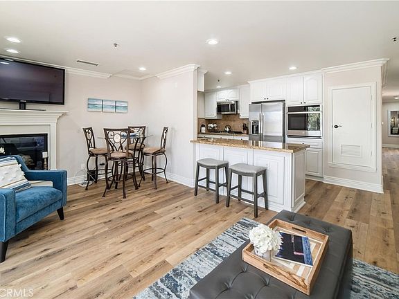 Enchant your senses in this beautifully recently remodeled end unit Terramour penthouse, located on the top floor in the heart of North Beach, no neighbors above. Authentically detailed Spanish Revival Architecture graces both the exterior and interior of the secure gated building with elevator to all floors. Enjoy the open floor plan with 2 bedrooms and 2.5 bathrooms. Marvel at the cozy living room with gas fireplace and French doors leading to the outside patio. Gourmet kitchen features granite counters, stone backsplash, gas cooktop, stainless appliances, walk in pantry and breakfast bar. Primary Bedroom with walk in closet has another set of French doors leading to a Juliet balcony, complete with en-suite bathroom featuring dual sinks, walk in shower and tub. Second bedroom also has its own en-suite bathroom. Best of all is the easy access to the ocean view roof top deck that is perfect for entertaining, BBQing, or just relaxing while enjoying the views around the firepit. The subterranean gated parking has two dedicated spots plus a 5 x 10 storge unit and secure elevator to all floors. Minutes to the beach, walking trails, bike trails, train station, trolly and downtown San Clemente to enjoy fine restaurants and shopping!