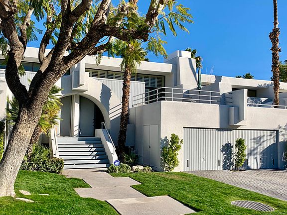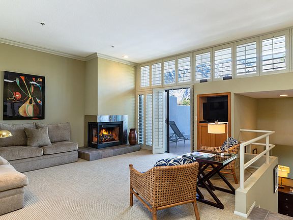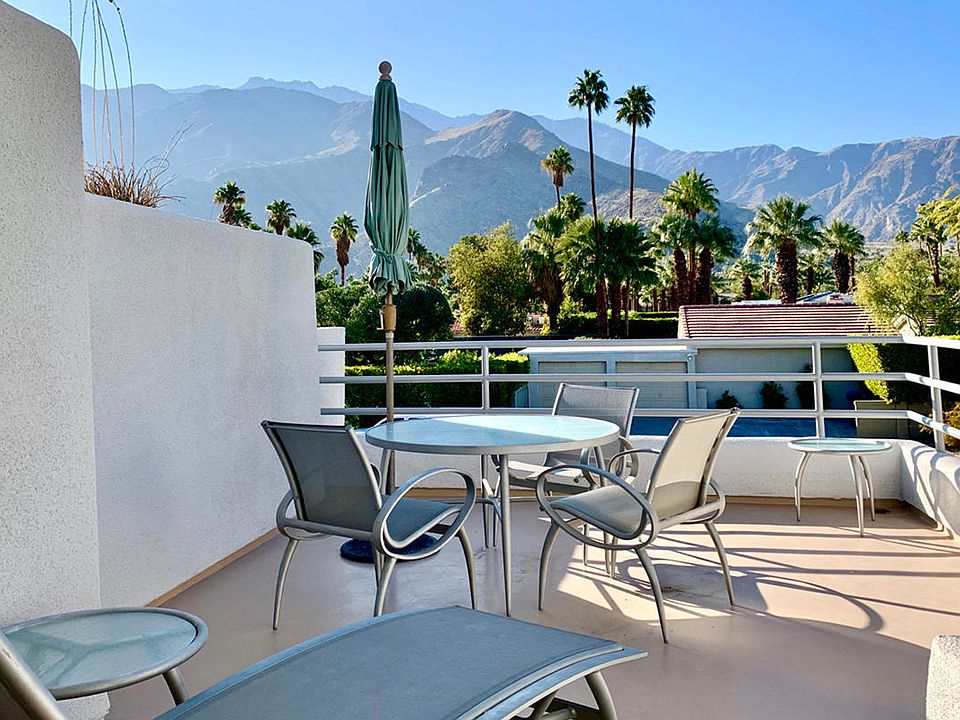 Look no further to find an affordable two bedroom, three bath home, with a garage, in one of Palm Springs best neighborhoods. Located just blocks from the Arrive Hotel and North Palm Canyon Drive's retail core, this townhome-like condo in Little Tuscany has it all. Its contemporary styling offers a refined aesthetic with warm, rich colors, while the split-level design provides a perfect separation between the lower bedroom level and the upper entertaining space. Upstairs you will find a large living room with gas fireplace, dining room, powder bath, and kitchen with prep island. Beautiful designer finishes along with architecturally interesting arched windows make this open, loft like space feel comfortable and inviting. Not to be missed is the private patio off the living room with stunning mountain views. The two, downstairs bedrooms both feature en suite bathrooms. The owner's suite enjoys sliding door access to a rear courtyard, with easy access to the community pool. The laundry area is integrated into the downstairs hallway. Perfection.