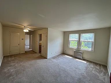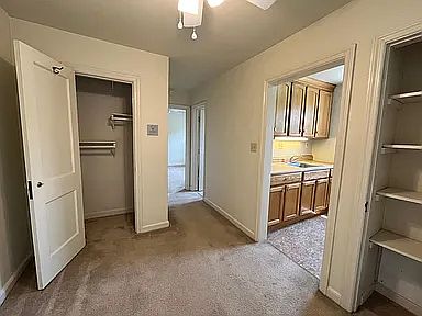 Wall-to-wall carpeting throughout all major rooms Bathroom with 2 cabinets,