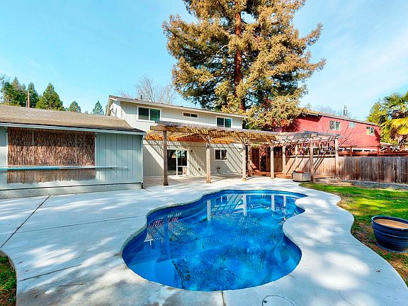 The backyard has a beautiful in-ground pool with a deck and patio and large lawn area. All the pool equipment you will need is included. Additional storage upstairs that could be a fourth bedroom.