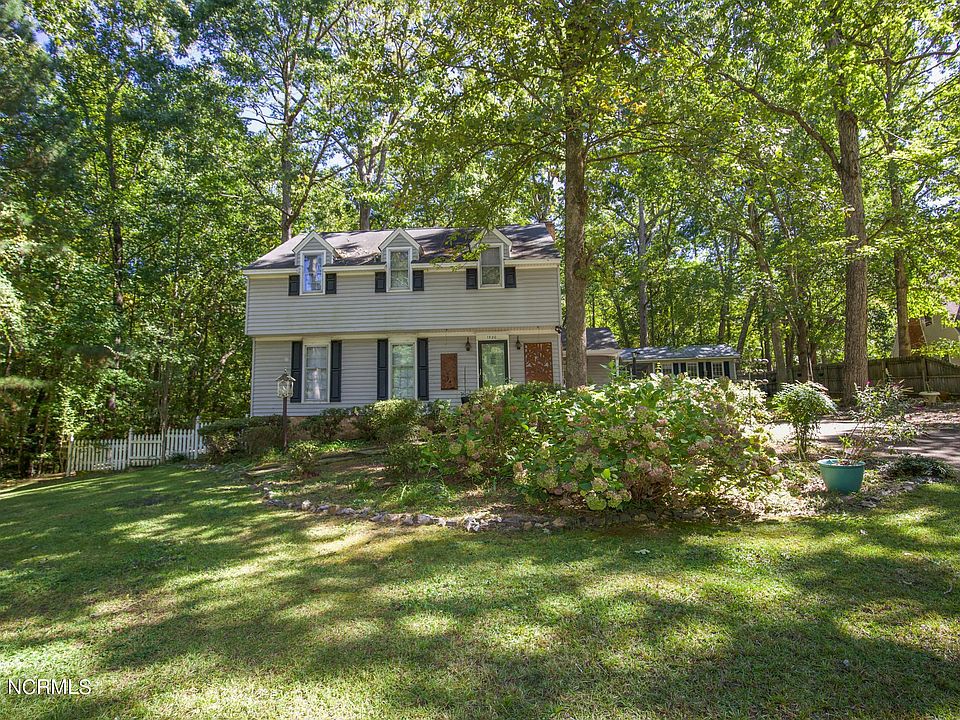 Lovely 4 bed 2.5 bath home situated on a large lot on a cul de sac! There is a spacious workshop, 2 additional storage sheds, a detached screened porch, and a huge back deck that is perfect for entertaining! Inside the home there are charming details to include floating bamboo hardwood floors, crown molding, and chair railings. The main level features a formal living room, dining room, family room, half bath, laundry room, and kitchen. The second floor has a primary suite with an ensuite bath, 3 additional bedrooms, and a full bath. There is also an option to enjoy the community center & pool with an opt-in HOA. Conveniently located near US-1 for an easy commute to Raleigh, Moore County area, and Ft. Bragg. Schedule your showing today!