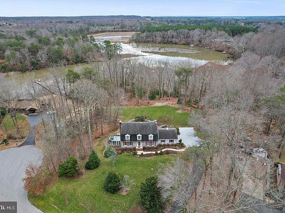 Price Improvement! Beautiful waterfront home on Hunting Creek in Fiddler's Point sits on 5.14 acres of privacy. The yard will bring you lot's of pleasant surprises! Your own pier, year round water views, a beautiful waterfall off the back deck with fish and the lovely sounds of water rushing by. There is a fenced area for a garden with protection from local wildlife. There is also a large shed for your outdoor equipment. Multi level deck has shade when using the two Sunbrella electric awnings . Geothermal heating and solar panels (owned) provide generous savings on your electric bills as well as credits. There is a community pier right next to the house with ease of access for your water craft. You will also have a private boat slip for your use. Inside you will find an updated kitchen with stainless appliances , newer custom cream color cabinetry and quartz counter tops. The great room is huge and features a fireplace and seating for lots of guests! The primary suite has been remodeled with a jetted tub, separate shower and two vanities. You can easily put a washer and dryer in the closet area and is already set up to accommodate them. There are an additional 2 closets for the owners clothing in the suite. The other 3 bedrooms are quite spacious with some having water views. The lower level is finished with a full bath, lots of built in shelving, a recreation room and a gorgeous sunroom. This room is full of light on the darkest days and is perfect to use for your plants and flowers. You will also have a storage area and a den right next to the full bath. House is wired & has a generator that runs the well pump and a few appliances. You will not want to miss this warm welcoming home located in the Huntingtown school district. Comes with a boat slip at community pier.