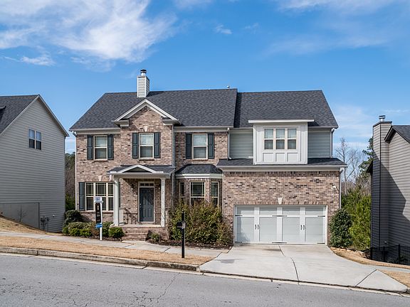 Beautiful brick front, 5 bedroom and 4 bath home. Upgraded kitchen with stainless steel appliances that opens to the family room and breakfast area. A welcoming foyer with formal dining and study/library/living room. Guest bedroom and full bath on the main. Dark wide plank hardwood flooring. Master and 3 additional bedrooms upstairs. Master features a separate his & her vanity, separate tub & shower, and a huge walk-in closet. The back offers double decks and an amazing private and fenced yard! Zillow Inc. has a real estate license in Georgia.