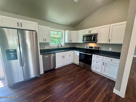 Brand new home with an open floor plan. There is a vaulted ceiling in living, dining area and kitchen. Beautiful white kitchen cabinets with granite countertops and the refrigerator, range, dishwasher and microwave are included. This home is built on a slab foundation for easy access. No steps from the garage to the house. Enjoy the summer evenings from the patio off the kitchen area with privacy fence. The front yard is sod. Don't miss the opportunity to own this beautiful new home. You need to see this home to appreciate how nice it is. Not in flood plain. Owner/Agent