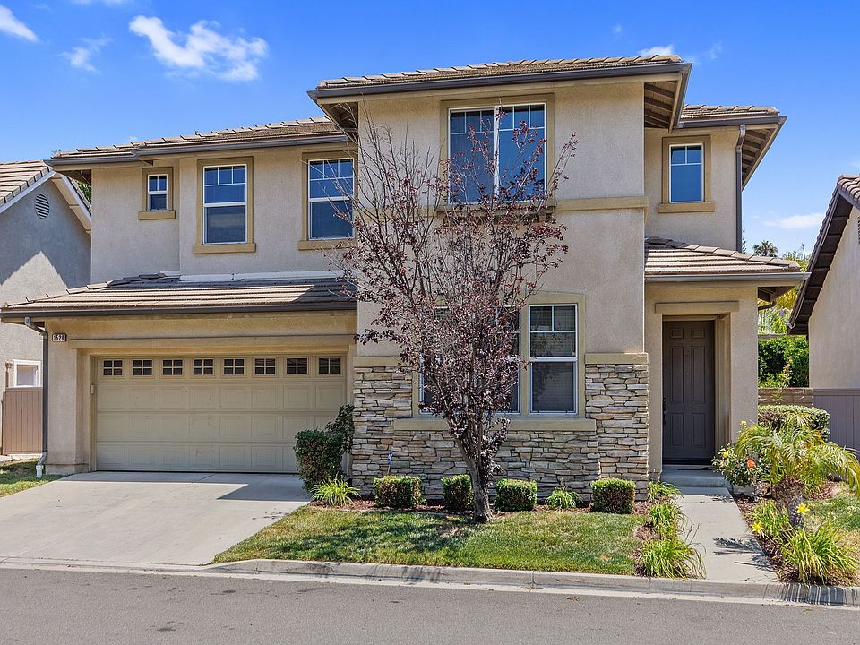 Beautiful 2 story home 4 bedrooms (1 downstairs) and 3 bathroom (1 downstairs) home. Tile flooring downstairs with carpet inserts in the dining area and family room and carpet in the living room. High ceilings in the entry and dining room. Open kitchen with stainless steel appliances. Great storage in the closet under the stairs. Common room is spacious with lots of windows a ceiling fan and the attached bathroom has an extra large closet dual sinks, separate tub, granite countertops and a linen closet. The two other rooms have ceiling fans, one has an extra large closet and a shared upstairs bathroom. The two car garage has cabinets for storage. Enjoy the backyard with it's stamped concrete patio, two levels with grass, plants and trees. Gardener included. The community has an association gated pool and park. Well behaved pets will be considered with increased deposit. No smoking please. Available 9/5.