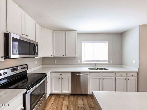 This spacious 5-bedroom, 3-bathroom residence offers an open floor plan perfect for family living and entertaining. The kitchen features modern appliances, ample counter space, and a convenient breakfast bar. The primary suite boasts a large walk-in closet and an en-suite bathroom with dual sinks and a soaking tub. Situated in a quiet neighborhood, this home is close to parks, schools, and shopping. Don't miss out on this fantastic opportunity to own a move-in ready home in one of Buckeye's desirable communities!