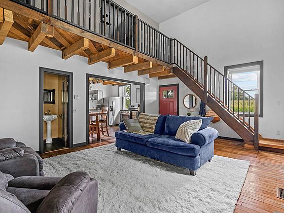 Looking for a quiet place in the country loaded with charm and unique features? This is the one! This beautiful home showcases a soaring ceiling in the living room, updated eat-in kitchen with stainless steel appliances, and a main floor primary en-suite. Four seasons family room offers additional main level living space that overlooks the private backyard. Upstairs lofted bedrooms both contain attached bathrooms! So many features to love—Metal roof, hardwood floors, exposed beams, brand new septic system, all appliances included in the sale. This gem won’t last long!