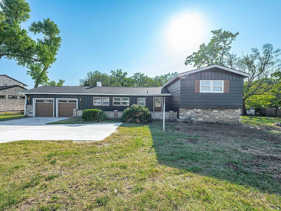 This beautifully remodeled 3-bedroom home offers modern upgrades and a prime location in the highly sought-after Andover School District. Situated on a large, almost 1-acre lot, the property backs up to the neighborhood pond and provides plenty of mature trees for added privacy. Inside, the home includes 2 fully remodeled bathrooms, one of which features dual shower heads for a spa-like experience. You'll find fresh paint throughout, brand-new carpet, and LVP flooring. The kitchen boasts sleek quartz countertops and new appliances. The walk-out lower-level family room includes an electric fireplace and opens onto the lower patio with a peaceful view of the water. With plenty of windows filling the home with natural light, it feels spacious and inviting. Additional highlights include a 2-car garage and ample outdoor space to enjoy. Seller is a licensed agent in the state of Kansas. Seller has an interest in the property.