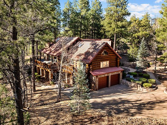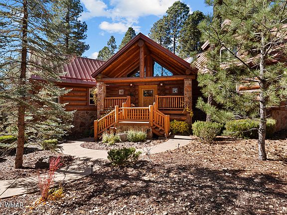 Incredibly rare full log home on the 15th fairway of the prestigious Cabin Course in Torreon. Nestled in the Tall Ponderosa Pine Trees at the end of the Little Leaf cul-de-sac, this is the home to make your great escape to Mountain life. As soon as you step inside, you will be awe-inspired by the spectacular craftmanship of it's full log beauty. Enjoy the open-concept living area that will keep the festivities going from the kitchen to the dining area, to the cozy gas fireplace made for a true mountain getaway. Your guests can relax in their own rooms with a Jack and Jill bathroom. The primary bedroom features its own loft and an abundance of space. The upstairs loft provides ample space for more entertaining. Outside, enjoy stunning views of the Cabin Course from the impressive deck!