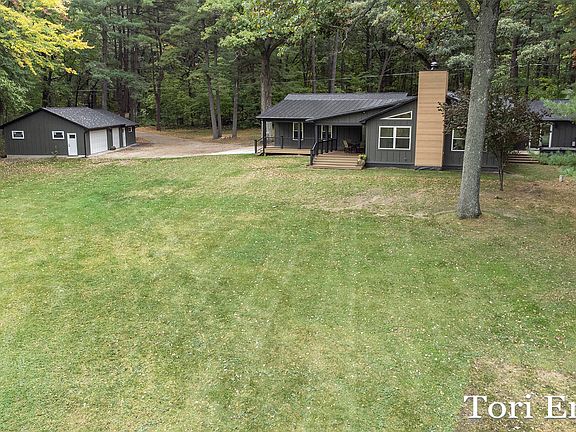 Rare opportunity on all-sport, Back Turk Lake. This home is situated on a beautiful 4+ private acres with an impressive 322 ft of frontage. This custom home was rebuilt in 22/23 with high-end finishes. Inside this immaculate home you will find an open & airy layout. Stunning kitchen, living room with fireplace & dining space perfect for relaxing or gatherings. Custom woodwork & cabinetry. Owners suite with attached full bath & walk-in closet. Sliders leading to private deck with hot tub. Additionally there are 2 more bedrooms & another full bathroom. Spray foam insulation for house & garage. 2-stall attached garage & 3-stall detached garage with office or rec room. All composite decking. Tree lined driveway. All new mechanicals, electrical, plumbing roof, well. Offers held until 10/18. 6p