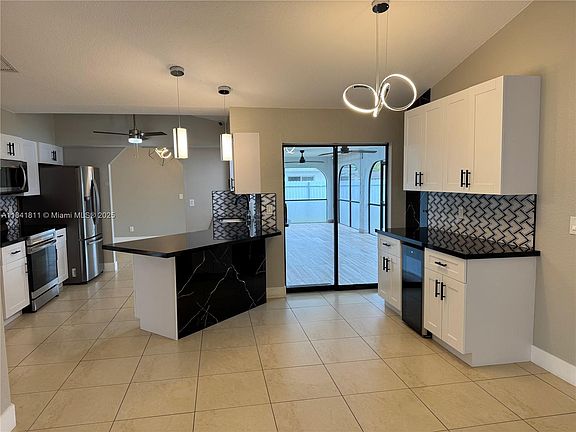 Welcome to this single-family, 3 beds 2 bath home located in the heart of Cape Coral. It has direct access to Del Prado Blvd, close to schools, shopping centers, health centers and restaurants within minutes. Also if you are a fan of the water it is a short drive to the closets marina. Be part of beautiful an peaceful neighborhood while enjoying all the renovated amenities such as the kitchen, equipped with new appliances including wine cooler and stunning black erarile countertop, the bathrooms has lots of natural lighting, efficient two person vanity. The fence is newly placed to add privacy to the spacious yard where the kids the kids and pets can play without worries.