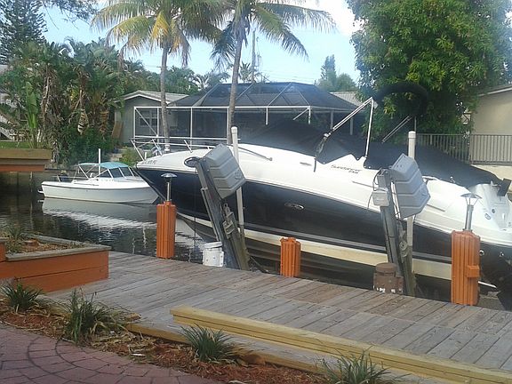 hurricane impact windows, stamped concrete driveway and patios, in ground jacuzzi, stainless steel appliances, working fire place, wine storage, 2 car garage