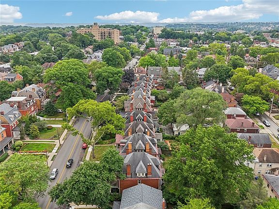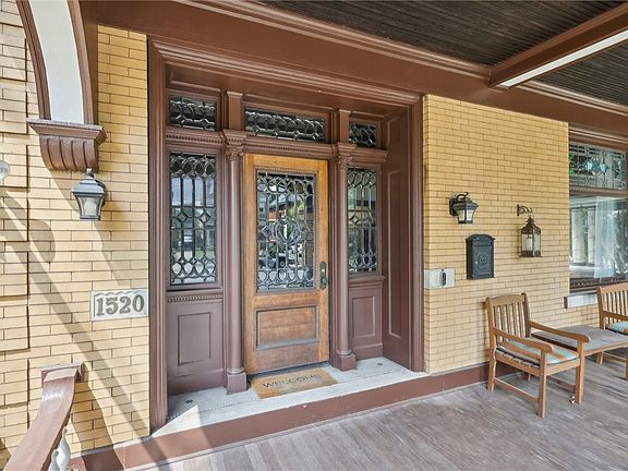 1520 Shady Avenue, built in 1925, is in Squirrel Hill’s “Murray Avenue Lots,” an area with high-class improvements and streetcar service. The Colonial Revival home, influenced by Georgian and Federal styles, features detailed cornices, pilasters, leaded glass panels, and brick columns. The foyer boasts dark wood paneling, a detailed staircase, and solid columns. The living room has stained-glass windows, a prominent fireplace, and elegant woodwork. The kitchen combines modern elegance with timeless charm, updated appliances, and ample storage. The sunny rear porch is perfect for relaxation or plants. The second-floor bathroom blends historic charm with modern convenience. The third-floor family room has cabinetry and vaulted ceilings and is ideal for gatherings. The yard offers play space and a fenced area for pets. The two-car garage is a rare convenience. Near parks, shopping, hospitals, and universities, the home is exceptionally convenient for professionals. (6th BR=WIC on 3rd fl.)