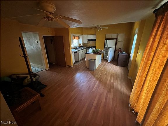 The first floor consists of a living room with a bay window, a Kitchen with an island, a dining area, and a bathroom. The second floor offers three bedrooms and one full bathroom. The home has a large wrap-around style front porch. Nice backyard with glass sliding door to dining area and man door to kitchen.
