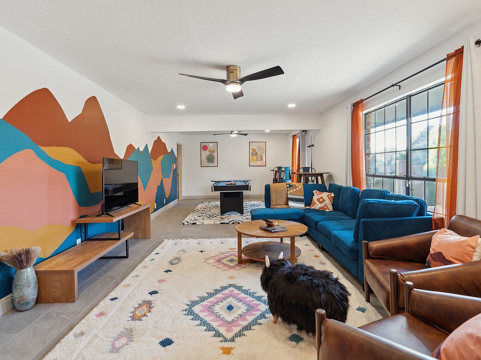 Welcome to your Albuquerque retreat! Located in a safe and serene neighborhood, our home features a spacious backyard with plenty of amenities, perfect for relaxation and gatherings. Inside, enjoy an insta-worthy interior with vibrant Southwestern decor and cozy, stylish spaces. Whether you're lounging in the living room or dining in the chic area, this home offers the perfect blend of comfort and charm. Book now for a stay that combines safety, style, and relaxation! Living Room Step into the vibrant charm of our New Mexico-inspired living room. Enjoy a stunning desert mural, a cozy blue sectional sofa, and elegant leather armchairs. With a smart TV, pool table, and ample natural light from large windows, this space is perfect for relaxation and creating memorable moments. Dining Room Savor meals in our cozy dining area featuring a round wooden table with stylish mustard chairs, perfect for intimate gatherings. Floor-to-ceiling glass doors provide ample natural light and views to the outside, enhancing the space. The room is decorated with a vibrant rug and colorful wall plates, adding artistic flair, while a blue built-in shelving unit displays chic decor. This inviting setting is ideal for both casual and formal dining. Kitchen Cook with ease in our modern kitchen, boasting stainless steel appliances, elegant white cabinetry, and marble countertops. The open layout flows seamlessly into the dining area, making it perfect for entertaining. Bedrooms Experience the luxury and sophistication of our four meticulously curated bedrooms, meticulously crafted to elevate your relaxation experience. Step into the first bedroom, where a lavish king-sized bed awaits beneath a captivating blue accent wall, inviting you into a realm of tranquility and indulgence. The second bedroom offers generous space with two king-sized beds, ensuring ample room and opulent comfort for your guests. In the third bedroom, discover the allure of two queen-sized beds, promising a restful haven for your nights. Lastly, the fourth bedroom caters to younger visitors with two snug twin beds, providing a cozy retreat after a day of exploration. Each room is a unique blend of contemporary design and vibrant hues, thoughtfully arranged to create an ambiance of warmth and rejuvenation, perfect for unwinding and revitalizing. Grocery Stores Smith's Food and Drug Address: 200 Tramway Blvd SE, Albuquerque, NM 87123 Distance: Approximately 1.3 miles away. Sprouts Farmers Market - Four Hills Address: 13150 Central Ave. SE, Albuquerque, NM 87123 Distance: Approximately 1.5 miles away. Sprouts Farmers Market - Montgomery Blvd. Address: Montgomery Blvd., Albuquerque, NM Distance: Approximately 3.5 miles away. Restaurants MAS Tapas y Vino - Located at 125 Second St NW, Albuquerque, approximately 4.5 miles away. This restaurant offers a selection of Spanish tapas and a cozy atmosphere. Carrie's at The Clyde - Situated at 625 Silver Ave SW, Albuquerque, about 5 miles from your location. It features a Southwest-inspired menu in a setting that harks back to a bygone era of dining. Seasons 52 - Albuquerque - Found at 6600 Menaul Blvd NE, Albuquerque, roughly 4.8 miles away. This restaurant is known for its seasonal menu that emphasizes fresh, natural ingredients. Attractions Old Town Albuquerque (Approx. 15 min drive): Explore the historic heart of the city with adobe buildings, shops, galleries, and restaurants. Perfect for a stroll and soaking in New Mexican culture. Sandia Peak Tramway (Approx. 25 min drive): Take a breathtaking tram ride up to Sandia Peak for stunning views, hiking trails, and a restaurant at the summit. ABQ BioPark (Approx. 20 min drive): Enjoy a visit to the BioPark, including the Zoo, Aquarium, and Botanic Garden. A fun, educational experience for all ages. Hot Air Balloon Ride (Approx. 30 min drive): Experience Albuquerque's famous hot air balloon rides, offering a magical sunrise journey over the Rio Grande Valley. Indian Pueblo Cultural Center (Approx. 15 min drive): Delve into the history and culture of New Mexico's Pueblo people through exhibits, traditional dances, and workshops. Explore Science Center and Children's Museum (Approx. 20 min drive): Perfect for families, this interactive museum offers hands-on exhibits focused on science and learning. Shopping at Nob Hill (Approx. 15 min drive): Visit this trendy neighborhood filled with unique shops, boutiques, and cafes ideal for finding one-of-a-kind souvenirs. The National Museum of Nuclear Science & History (pprox. 10 mins drive): This museum offers interactive exhibits and educational programs about the history and science of nuclear energy and its uses. Tingley Beach (Approx. 20 min drive): Enjoy outdoor time with several fishing lakes, walking paths, and picnic areas for a relaxing day out. **Availability The unit will be available starting January 1, 2025. An earlier start date can be negotiated. **Lease Duration Minimum lease term of 1 month, with options for extension. **Rent Monthly rent of $5,500 due on the first of each month. **Utilities Tenant will be responsible for all utility costs, including internet, gas, water, and electricity. **Maintenance The landlord will provide a deep cleaning of the property once a month to maintain the pristine condition of the house. **Security Deposit A security deposit of $5,500 is required, refundable upon satisfactory move-out inspection. **Pet Policy No pets allowed. **Smoking Policy No smoking allowed.
