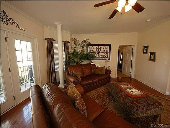 Stunning home in one of the areas most sought after neighborhoods. A wonderful, classic design that will charm the most discerning buyer. Home sits on large lot with mature trees and landscaping, with soft tan color complemented nicely with rich brick skirting. Stately porch accented with wrought iron railing is perfect for chatting with neighbors as they stroll by. As you enter you will find gleaming oak hardwoods in foyer with high balcony above and a well-appointed office to the right. Left is the formal dining room with picture frame wainscoting and a decorative flair...perfect for a large feast! Living room is cozy with great accents that include back porch access, 2 open-sided gas fireplace shared with kitchen. A gourmet has it all there for them: sharp appliances, granite tops, w