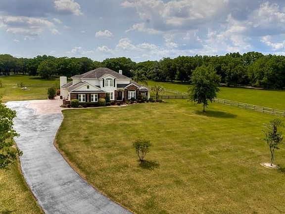 This delightful home will surely charm you...located on 2 acres with long driveway leading from front gate, this is the true meaning of refined country living! Gorgeous curb appeal with brick accents, side-entry garage, decorative shutters & pretty landscaping! Leaded glass double front doors open to the foyer with wood floors & soaring 20 ft ceilings that continue into the formal living room that also features fireplace & double level windows! Entertaining will be a breeze in the spacious dining room with tray ceiling & crown molding! The gorgeous kitchen is a one of a kind with 42" maple cabinets with crown, granite counters & wall of brick from historic Plant City that accents the gas cooktop & double oven! Open to the kitchen is the spacious family room with 2nd fireplace accented by a wall of exposed brick! Attention to detail continues in the master bedroom with another wall of exposed brick, this time from Ybor, tray ceiling & 3rd fireplace! The remodeled master bath boasts jetted tub, his & hers sinks & large shower! The three secondary bedrooms are all oversized; what a perfect retreat for family & guests! An office with double French door entry is perfect for working from home! At the back of the house is a large screened lanai, perfect for outside living & entertaining! Rarely does an opportunity come along to own a special home with all the bells & whistles & sitting on a gorgeous lot! This home is truly unique! Come take a look & get ready to fall in love!