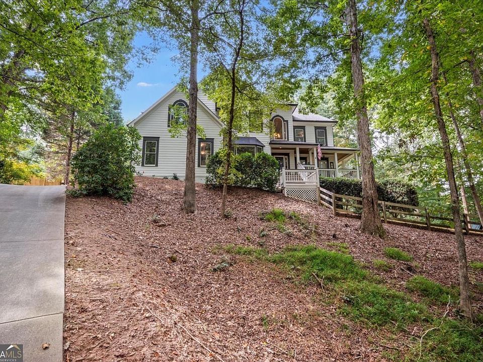 Tucked away at the end of a cul-de-sac in Canton's Cherokee Falls, this beautiful home offers charm, space, and incredible amenities. A wrap-around porch, two screened porches, and a large deck make the most of the wooded setting, while inside you'll find a soaring two-story foyer, hardwood floors, and a kitchen with Brazilian marble counters, new stainless appliances, a beverage bar, and a unique curved counter with custom seating. The spacious primary suite features an attached sitting room, walk-in closet, and upgraded bath, while the terrace level boasts a fully remodeled basement with ample storage and a bonus room that serves as a spacious 6th bedroom for guests. Outside, a lighted SnapSport court is perfect for basketball, volleyball, or pickleball, alongside a trampoline and playground. With a remodeled laundry room, brand-new HVAC, and easy access to parks, trails, and I-575, this home delivers comfort, convenience, and lifestyle all in one.