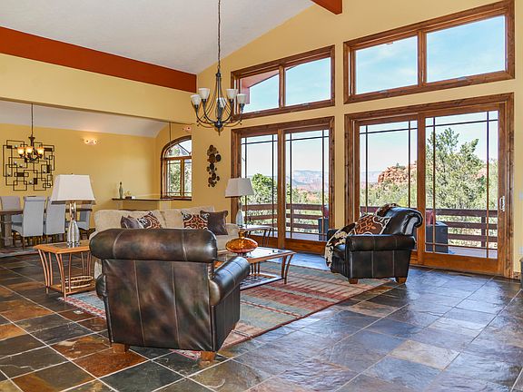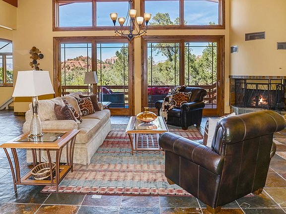 Hike to Cathedral Rock from your back yard! This incredible property is one of a kind. Nestled right up against the Red Rocks and surrounded on 2 sides by Coconino National Forest -stunning views & seclusion! 360 degree views from Cathedral Rock all the way to Thunder Mountain. This luxury home features multiple master bedrooms & separate living spaces. Main master bedroom has views, deck access, fireplace & a lush spa bathroom w/soaker tub, giant shower & walk-in closet. Huge great room has beautiful cathedral ceilings, feature fireplace and gorgeous slate floors. A sumptuous chefs kitchen with subzero fridge, 6 burner Wolf stove, wine bar w/ red & white fridges, walk-in pantry & deck for dining al fresco! 5 outdoor living spaces including a phenomenal roof top deck perfect for stargazing