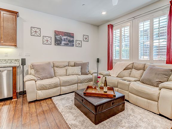 Practically new construction for this 2015 townhouse offering very attractive upgrades such as laminate wood flooring and custom shutters on the ground level, kitchens granite slab countertop, and custom island. GE stainless steel appliances with a refrigerator, beautiful cabinetry, energy-efficient features including tankless water heaters, home automation, ceiling fan in the bedrooms and much more. Community amenities for residence only include, a residents only pool with spa, six outdoor BBQ areas, greenbelt, community room clubroom and tot lot.