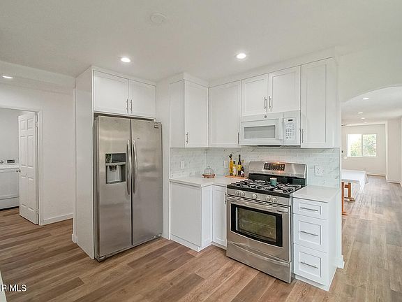 The private, spacious ADU has also been updated to offer a 2-bedrooms, 1-spacious bathroom, a Large kitchen with dining area, new wood-like flooring, recessed lighting, built-in cabinetry, and quartz countertops.