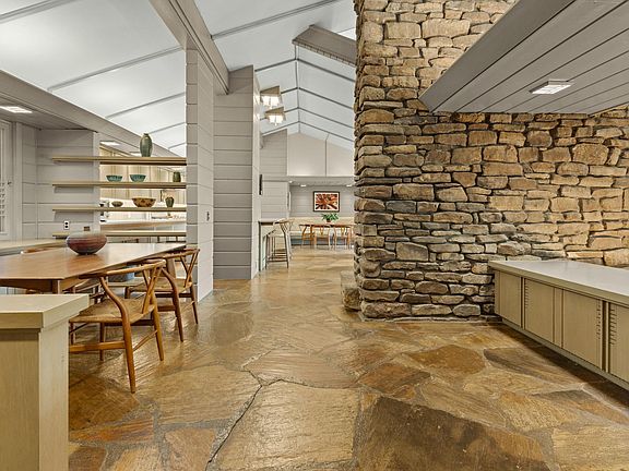 This stunning contemporary home designed by renowned architect, E Fay Jones, designed & built in 1961-62, features 4 bedrooms & 4 full baths, 3 stone fireplaces, stone floors and a beautiful in-ground salt water pool. The kitchen has been updated with new quartz countertops, a deep chefs stainless sink and KitchenAid appliances. The bedroom wing features all new cork flooring, new paint and cellular shades. The fourth bedroom and bath are located in the daylight, walk-out basement which leads you directly to the pool area. Enjoy expansive windows to capture natural light (custom cellular shades for privacy) and a large private yard--over 1 AC M/L There's an abundance of room for entertaining, not only inside the home but also on the expansive terrace. At night, energy efficient LED lighting casts a gentle glow over the property highlighting its lush exteriors. This home is a place to live and thrive! Original house plans convey. Visit the E Fay Jones website at https://fayjones.uark.ed