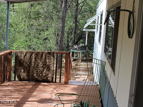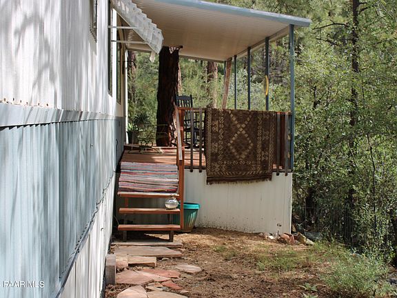 Partially furnished manufactured home, nestled on a hilltop amidst mature pine and oak trees. Set in a quiet 55+ park, with a club house and with a heated pool. Minutes away from downtown Prescott, and two miles away from Goldwater lake, with has excellent fishing and hiking trails, and water activities. Home has a brand new oven being installed soon. This is a must see location.