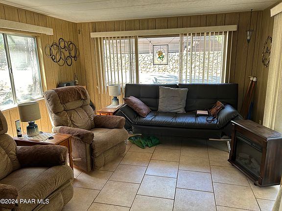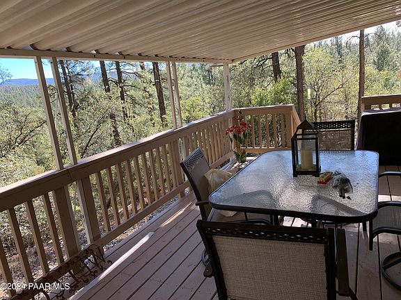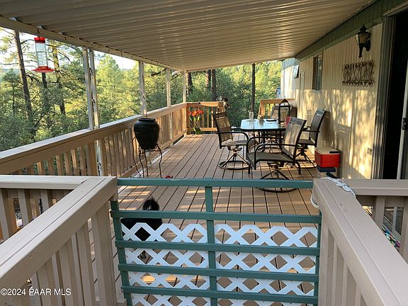 Welcome to your dream getaway nestled in the serene beauty of the Prescott pines. This furnished, cozy property offers a perfect blend of tranquility, privacy and convenience located just minutes away from downtown Prescott, providing easy access to shopping, dining and entertainment. Enjoy breathtaking views of the surrounding forest and mountains. Close proximity to hiking, biking, and equestrian trails, perfect for outdoor enthusiasts. Lots of upgrades - ceramic tile flooring 2016, new deck 2019, bathroom remodel 2021, exterior paint 2021, 8x8 storage shed and a deck fire pit. This park has one of the lowest lot rents in Prescott! The allure of this property extends beyond its walls with a community filled with friendly neighbors, you'll