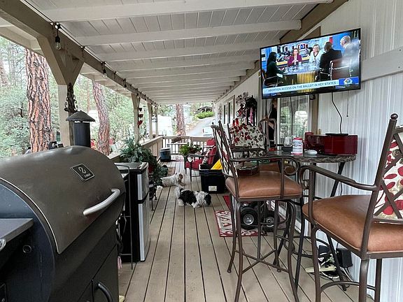 This home has lots of upgrades! Outdoor living at its best in the beautiful pines! 55+ community. 1485 sq ft, 3 bedrooms/2 baths, custom electric fireplace in living room, awesome wrap around deck, HUGE main bedroom with large en-suite, tile walk-in shower in main bathroom, stacked w/d, dual pane windows, stainless steel appliances (approx 3yo), upgraded cabinets with plenty of storage space. This park has one of the lowest lot rents in Prescott! $485/mo. The allure of this property extends beyond its walls with a community filled with friendly neighbors, you'll find a sense of belonging that enhances the joy of everyday living and when you're in the mood for socializing or recreation, the clubhouse offers an array of activities to suit every taste, ensuring there's