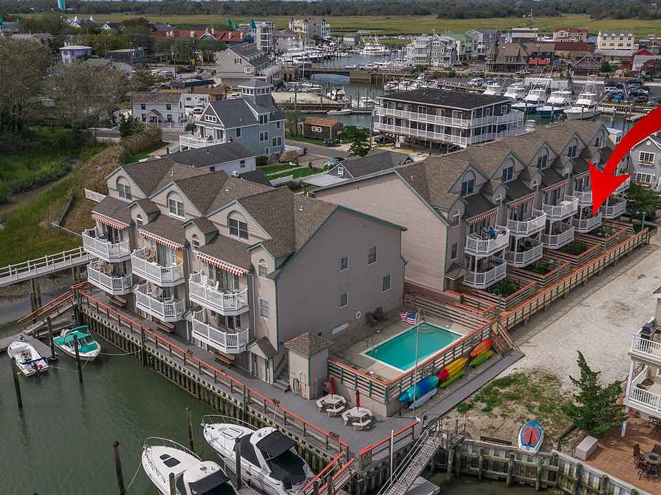 Marina District 2 bedroom, 2 bath condo complete with a 30 foot boat slip. This unit offers a spacious living room, dining area, kitchen for entertaining and Master suite and an additional bedroom and bath. The private deck will be your favorite spot to relax and enjoy the wild life under the retractable awning. With only 16 units in this complex the association offers a wonderful resort feel for year round or vacation use. There is a large storage area for all your water sports gear in front of the assigned parking spot. Park your car and head out on your boat or take a swim in the pool. Guest parking available. Close enough to ride your bike to town. This unit has a premier boat slip for easy access to Cape May Harbor!