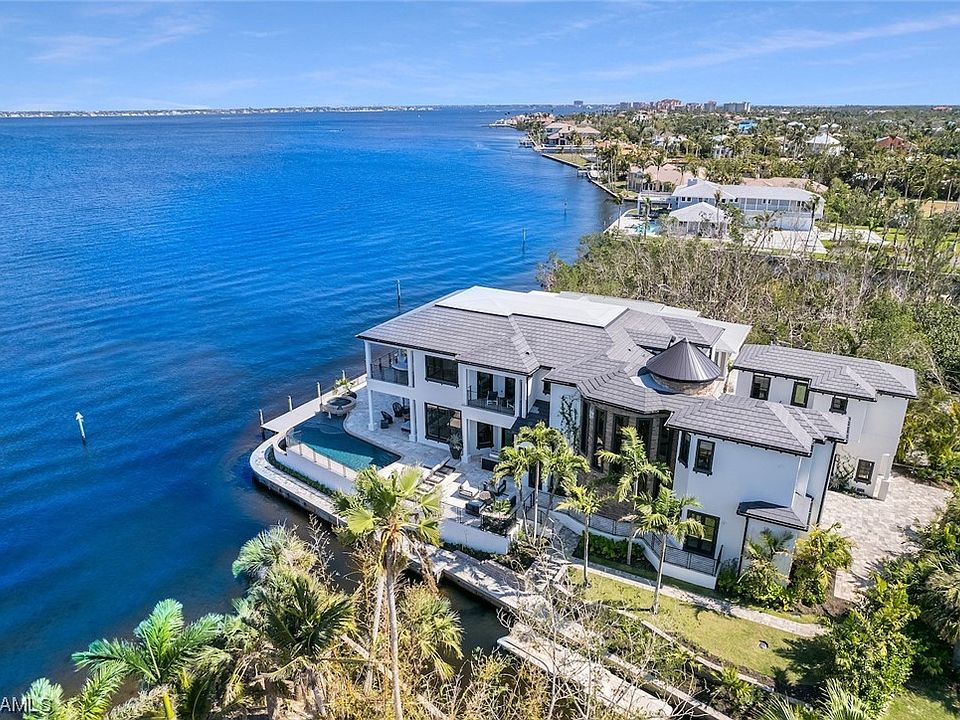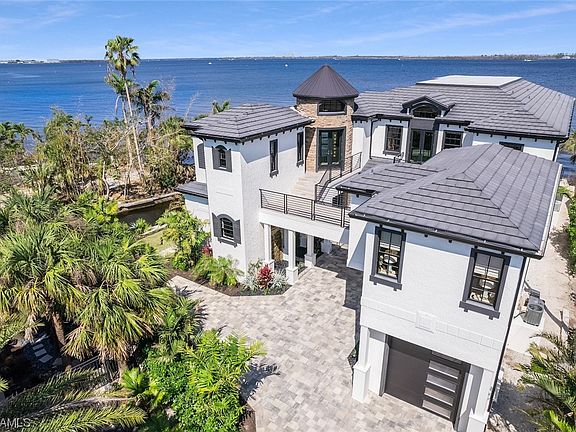 Waterfront Luxury Living like no other in SWFL. A one-of-a-kind estate home featuring gorgeous water views from every vantage point. Recently enhanced & totally recreated from top to bottom, inside and out, this amazing home comes completely & lavishly furnished. As you enter the home, you are blown away by a breathtaking walnut staircase & exquisite hand blown glass chandeliers. The flow of the home is so inviting & exciting all the way through. The expansive great room, dining area & gorgeous chef’s kitchen acts as living space while being able to enjoy incredible water & sunset views. The home features a private guest suite accessed from the portico walkway or from a separate garage below. The highlights are endless w/special features like a spacious billiards/media room, 3 car garage, an elevator, wine cellar, accordion pocket sliding doors, incredible quality, custom cabinetry & counter tops. The outdoor living space is private & peaceful w/a negative edge pool & spa, lots of open & covered deck space, fire pit area, dog walk, & multiple docking areas for all your water craft needs. This home will “WOW” you w/ detail, features, space, privacy, views & comfort.