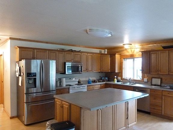 Incredible 1536 sqft Log Ranch home with a fantastic 1296 sqft detached shop!Wonderful open living area with a wood stove.Island kitchen with lots of cabinets.Spacious main bath with laundry area.Master bedroom with walk in closet and direct access to second full bathroom. Open 2.07 acre lot.Gravel pad with power for an RV.Metal roof on the home and shop.Laminate flooring throughout. Act fast!