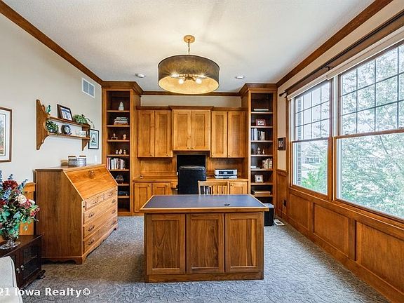 This gorgeous home is located where you can walk to several parks & trails. Set on a spacious .44 acre lot, this well kept one owner home boasts a 4 car garage & 4105 total sq. ft. The 1st floor has a large entry, 1/2 bath, dining room, office with built-ins, kitchen with cherry cabinets, Kitchenaid and Bosch appliances, a huge pantry, and a great room with a fireplace and built-ins. There is a serving pantry between the kitchen and dining room, a mudroom with lockers, and a closet off of the garage. Upstairs there is an owner's suite with a whirlpool tub and tiled shower, large closet, and 3 additional bedrooms with attached bathrooms. The lower level family room has a home theater with a projector and screen, wet bar, a bedroom, and 3/4 bath. Over $65,000 in updates and upgrades include a Screened Porch, carpet, tile, quartz countertops, light fixtures, pantry shelving, and door hardware. Cinch Home Warranty will transfer. Waukee Schools: Shuler and the new Northwest High School.