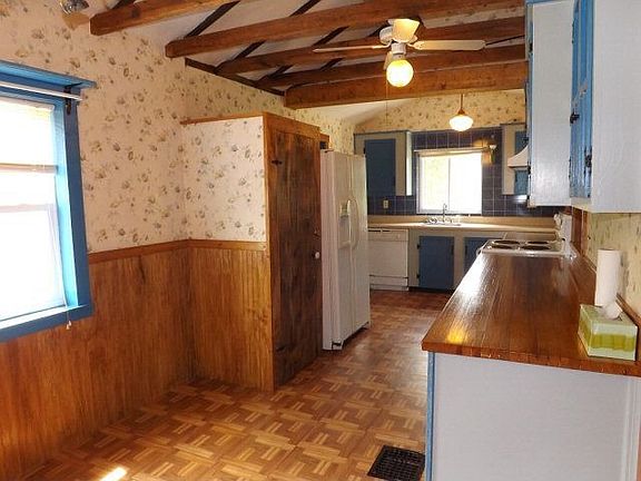A unique property with lots of unexpected touches - some barn board walls, screen cupboards and beams in the kitchen along with a counter made from a bowling alley, an outhouse linen closet in the bathroom, Dutch door on the master bedroom, old wood floors. 3 bedrooms, but one is a pass-through room, lots of closet space. Large outbuilding that could be a garage, workshop, or barn for animals. Large fenced-in yard is a gardener's delight -perennials, fruit trees, nut trees, ornamentals, grapes, raspberries, and several garden spaces that are currently not being used. Check it out!