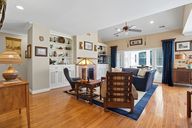 - Description: Hardwood, fireplace, built-ins, vaulted, fan
