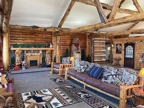 27 Acres with Unique Custom-Built Home/Lodge with Beautiful Hilltop Setting, Open & Wooded Land with Wildlife & Nature, Panoramic Views, Heated Garage with Living Quarters With Lean-To, 24 X 48 Shed. Washington Twp., Tuscarawas Co. Sells as Unit. Live Onsite with Online Bidding Available on Real Estate. ABSOLUTE AUCTION, all sells to the highest bidder on location. ONLINE BIDDING BEGINS FRIDAY, DECEMBER 13, 2024 – 12:00 PM and AUCTION LIVE ON-SITE BIDDING WILL BEGIN TUESDAY, DECEMBER 17, 2024, 10:30 AM, REAL ESTATE SELLS AT 11:30 AM. A must-see! 27 acres with a beautiful hilltop setting with Gambrel roof home and garage with second level finished living quarters having fully applianced kitchen, pantry, bedroom with walk-in closet, wood floors, full bath with stack washer & dryer, skylights, private balcony with stair glide. Full main level insulated heated garage with 2 overhead doors, restroom, storage closet, bedroom, FA heat plus window AC unit, and electric baseboard in living quarters with 20 X 70 lean-to addition. Metal sided. Great room/lodge 40 X 40 addition in the late ‘90s with open floor plan, exposed log beams, 20’ ceilings, kitchenette, wet bar, in-floor heat, hot tub, 2 X 6 insulated walls, and ceiling. Fireplace. Loads of natural lighting and skylights. Beautiful front foyer entrance with custom-made double doors with decorative pewter inserts. Large pine log custom-made sofa, chair, and end tables and decorative 9’ wood carved bear and 2 smaller carved bears to stay with the property. Additional 24 X 48 open shed, small greenhouse, drilled water well, and private septic system. 75% wooded balance open with outstanding views, loads of wildlife & recreation. Your own private retreat!
