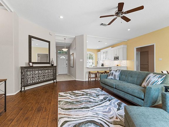 Your private updated oasis is waiting for you! Welcome to 15202 Sun Bird Ln. This gorgeous 3 bedroom/2 bathroom single-story home is located on a peaceful 0.28-acre lot. Step inside the updated home, which is flooded by nautral light. Laminate flooring in the main living area offers style and warmth, and the remodeled eat-in kitchen is absolutely stunning. Custom white cabinets, white quartz countertops, and a stylish backsplash await, along with a breakfast bar, stainless steel appliances, tons of storage, under-cabinet lighting, and a pantry, all of which are open to the living room. The spacious primary retreat features an updated bath you'll love relaxing in. There is a stand-alone soaking tub, a large walk-in glass shower with gorgeous marble tile, a spacious double vanity with granite counters, and walk-in closet. The convenient in-law floor plan features two guest bedrooms, which share an updated secondary bathroom, and are situated on the opposite side of the home from the primary suite. There is also a dedicated laundry room. The inviting living room features a wall of windows and a corner fireplace, overlooking the backyard. Step outside to your own private sanctuary featuring a large hot tub, spacious deck, lovely landscaping, slate stone walkway, pavers, a stone patio, landscape lighting, and mature trees, plus plenty of shade. The 7.5 ft backyard privacy fence is surrounded by trees on all three sides, offering ample privacy. Soak in the beauty of your surroundings, bird watch, or enjoy a meal with friends or family! Additional updates include fresh exterior paint (2024), hot water heater (2020), a whole-house Micro pure Air Purifier (2024), an added irrigation system in the yard and flower beds (2021), updated lighting and fans, and more. Located in the heart of Lakeway in a quiet neighborhood, this home is convenient to area amenities, shopping, restaurants, schools, and more. In addition, there is no HOA, and a low 1.6589% tax rate.