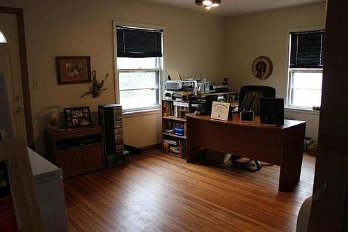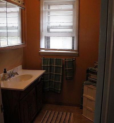 Near Sheyenne National Grasslands. New shingles. Living room with bay window and vaulted ceilings. Dining area has a sliding door going out to the deck. Mature tree stand.