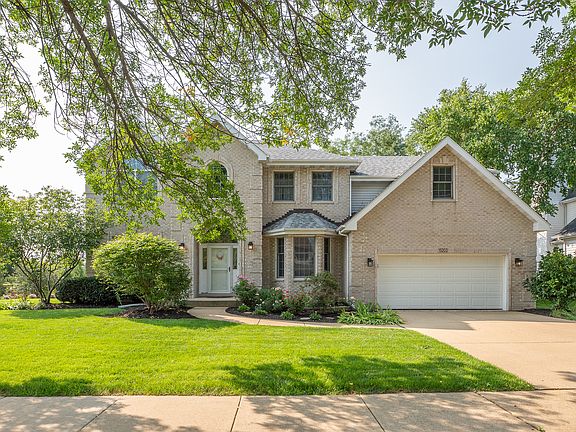 Nestled amidst lush greenery, this stunning two-story residence exudes both elegance and charm. The home's grand facade is characterized by its beautiful brickwork, a prominent arched entrance, and large, light-inviting windows. The two-story entry opens to the formal living room and French doors open to the den with hardwood flooring. The spacious formal dining room makes entertaining effortless. The generously sized culinary space is adorned with an island breakfast bar, a practical planning desk, and bountiful storage in the form of a dedicated pantry. Revel in the cozy ambiance of the family room, accentuated by a vaulted ceiling and a striking floor-to-ceiling fireplace. The master suite is a haven of luxurious relaxation, featuring its own vaulted ceiling, dual walk-in closets, and a luxury bath with jetted tub, separate shower, and dual sink vanity. There are three additional generously sized bedrooms- two with walk-in closets. For added efficiency, there's a laundry room on the second floor. Rounding off this stellar property is an unfinished basement and an extra deep two-car garage. The meticulously maintained yard showcases a patio, gazebo, and mature trees offering ample shade. The residence stands as a testament to timeless design and is a perfect sanctuary for those seeking a harmonious blend of luxury and comfort. Discover your dream home, where every detail speaks of quality and sophistication. Enjoy the coveted views of the lake at Settlers' Park. Walk/bike to downtown Plainfield and discover all our community has to offer. Recent updates include roof 2016, sump pump and battery backup 2017, furnace/AC 2019, washing machine 2020, oven/dishwasher 2021, and water heater 2023. Agent-owned interest.