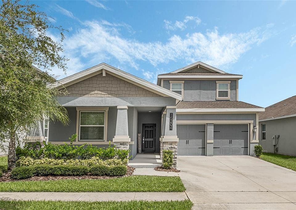 Welcome to your dream home in the desirable Storey Grove Community! This expansive newer build boasts over 2,700 sq ft of luxurious living space. The beloved Orleans II model features four spacious bedrooms and an upstairs loft that can serve as a second living space or a 5th bedroom with a private en suite. Two bedrooms, including a home office and nursery with a Jack and Jill style full bathroom, are tucked away in the front left of the home. Back in the large open living room, a stylish electric fireplace and bar seating off the kitchen highlight the main space. The primary bedroom, along with a screened patio and spacious backyard, are secluded in the rear. Enhanced with modern amenities, this home offers AC equipped with UV light for superior air quality, ensuring a fresh and healthy environment year-round. Step outside to enjoy upgraded outdoor lighting that highlights the beautifully landscaped surroundings. Located just 15 minutes from Magic Kingdom and Epcot, this home offers the perfect blend of tranquility and accessibility. The community is surrounded by new development and includes maintenance-free lawn care, allowing you more time to enjoy nearby amenities such as a Publix just 5 minutes away. Top-rated schools, state-of-the-art fitness centers, multiple pools, and scenic trails are all part of this vibrant community's offerings. Don't miss out on this opportunity to experience luxury living in a prime location with everything you need right at your doorstep. Schedule your tour today and make this your new home sweet home!